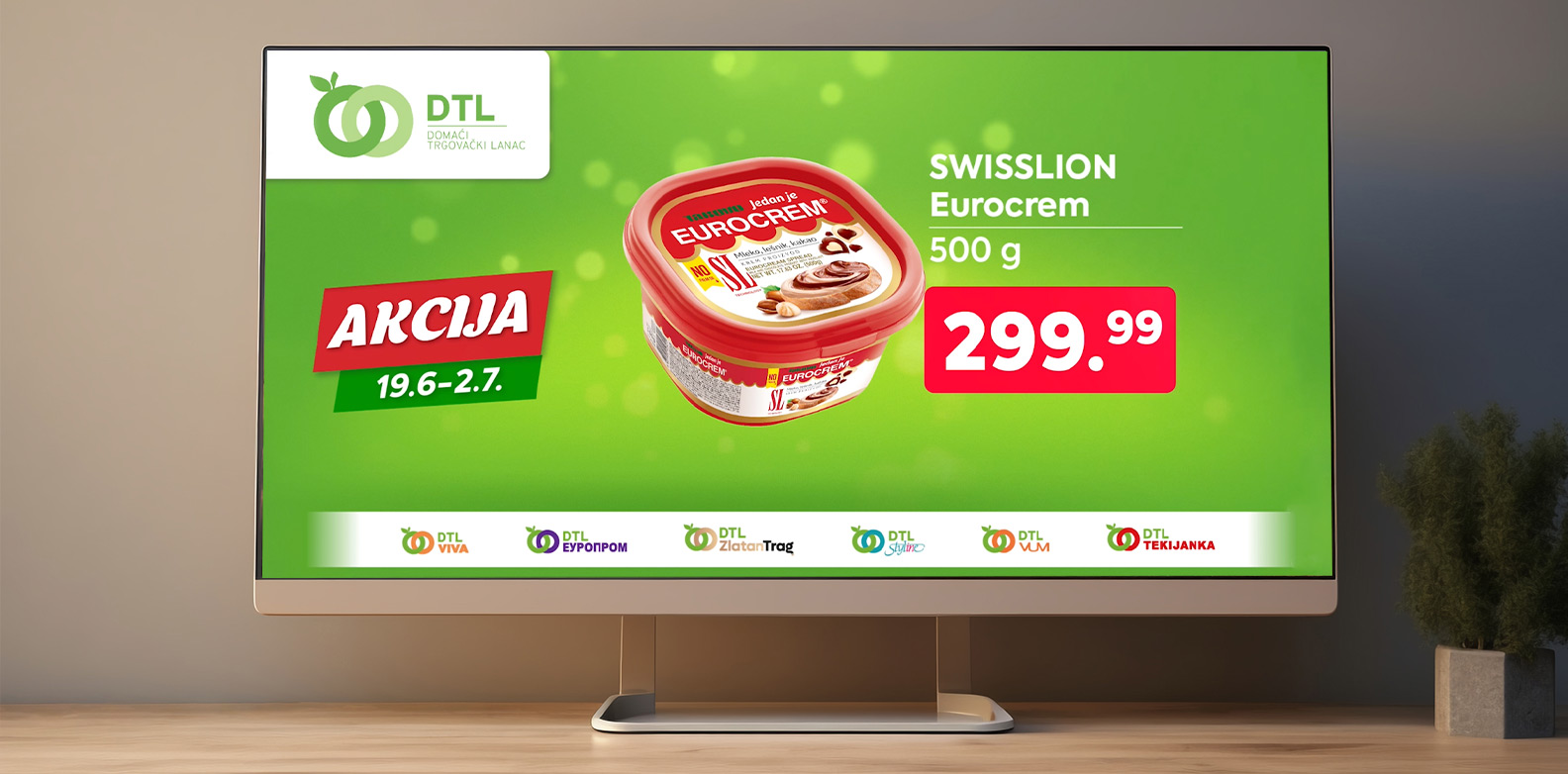 Sredinom juna emitovana je prva akcijska kampanja na nekoliko nacionalnih TV i radio stanica sa idejom da iskomunicira aktuelnu ponudu na sniženju u svim objektima DTL lanca. Inače poznata kao kratka, taktička forma u retail biznisu pod nazivom DTL Akcija, zaokružena je sloganom ovog lanca - “Tu smo komšije”.